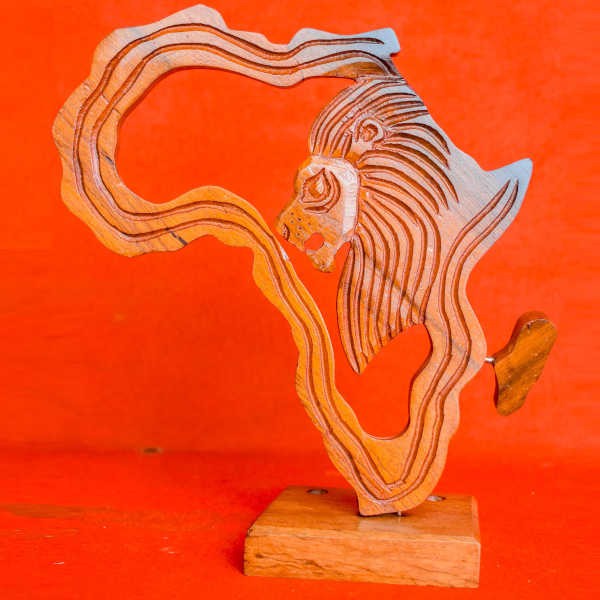 Carte d'Afrique - Tête de lion - en bois d'ébène - 20 cm de hauteur