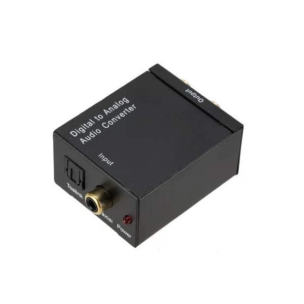 - Convertit les signaux audio numériques coaxiaux ou Toslink en signaux audio analogiques L / R.