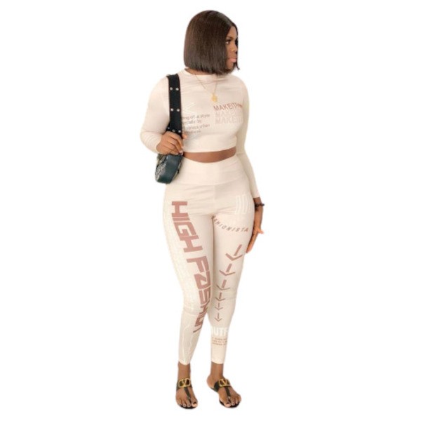 Ensemble deux pièces pour femmes, haut court, manches longues, survêtement, lettre imprimée, vêtements de sport, taille haute, pantalon, Fitness