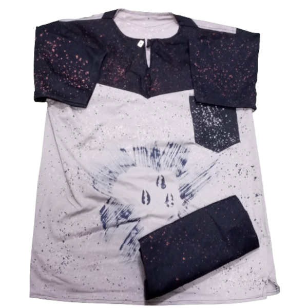 Ensemble Bogolan - Tenue traditionnel à impression Africa - Manches courtes - Modèle 3