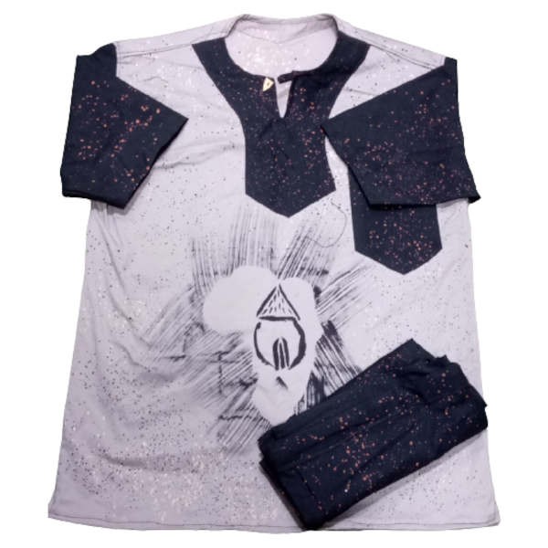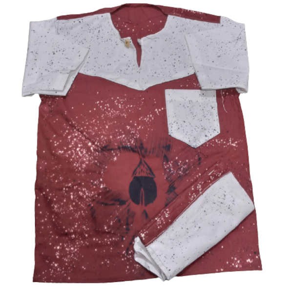 Ensemble Bogolan - Tenue traditionnel à impression Africa - Manches courtes - Modèle 4