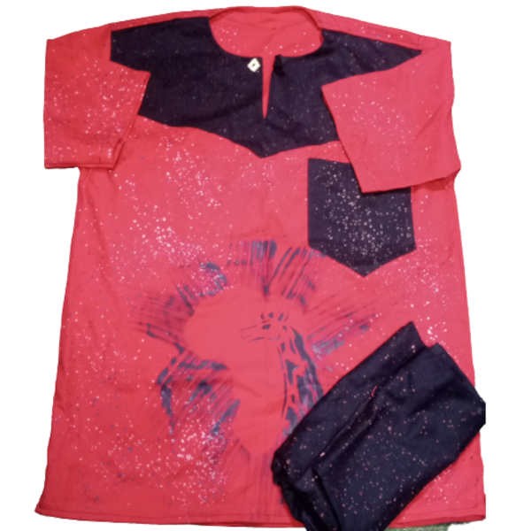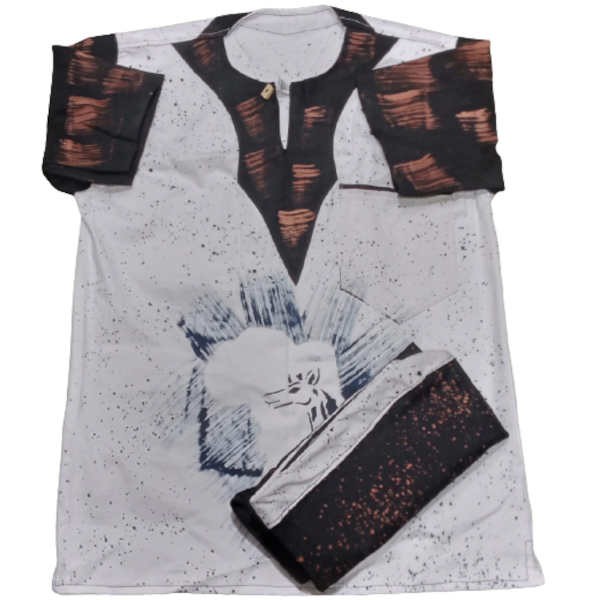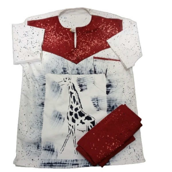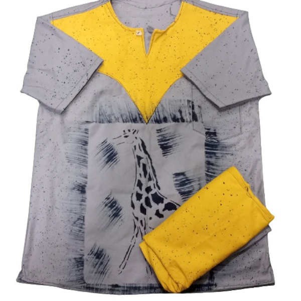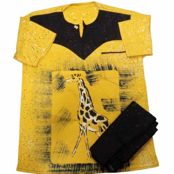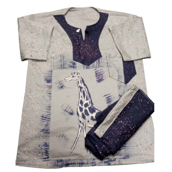 Ensemble Bogolan - Tenue traditionnel à impression Giraf - Manches courtes