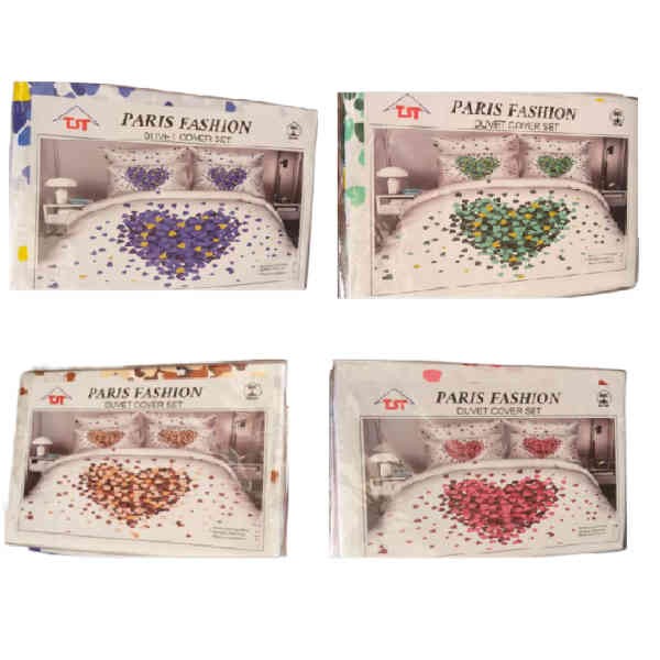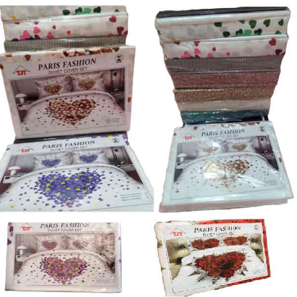 Disponible en une seule taille de parure pour un lit 2 personnes : Drap plat 240x300 cm + 2 taies carrées