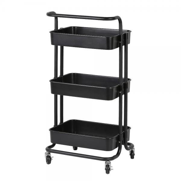 Découvrez notre jolie Desserte à Roulettes 3 Plateaux avec Poignée, idéal pour créer du rangement pratique dans votre cuisine grâce à ses 3 étagères !