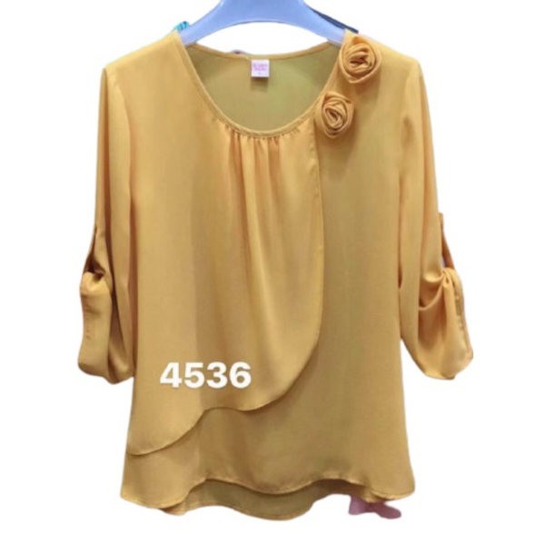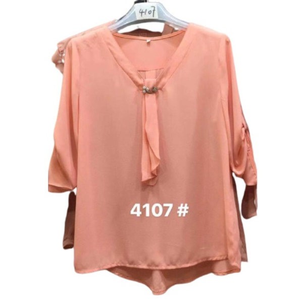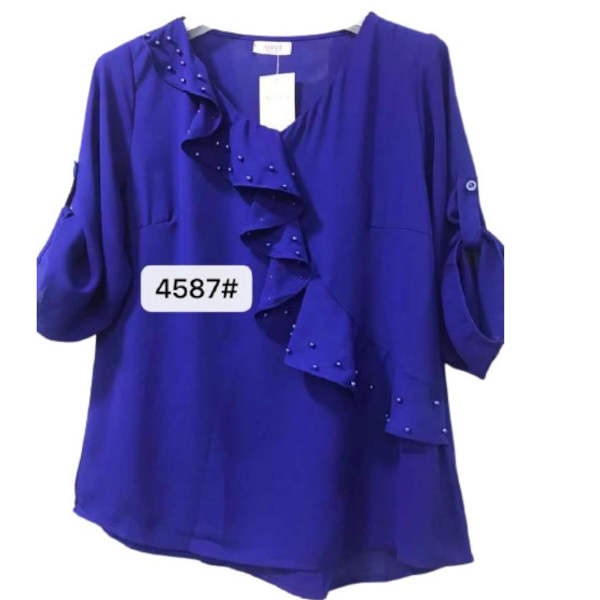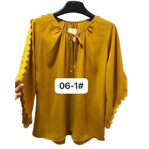 chemises manches demi lanterne, col en v, décoration à volants - Type Red