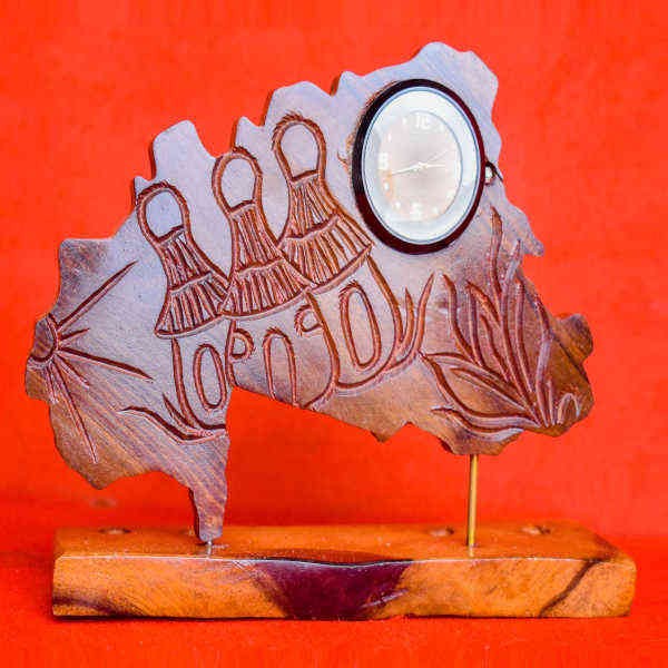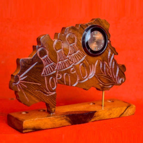 Horloge - Carte du BURKINA FASO - en bois d'ébène - 13 cm de hauteur