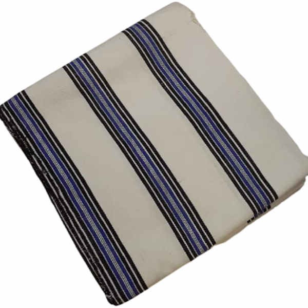 Le pagne est vendu en bandes telles que sorties du métier à tisser. Un pagne assemblé mesure environ 180 cm x 120 m