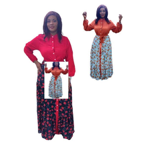 Taille de l'article sur l'image :Taille : 38 Longueur du produit: 145 cm Tour de Poitrine : 96 cm Tour de taille : 92 cm Tour de la hanche : 105 cm