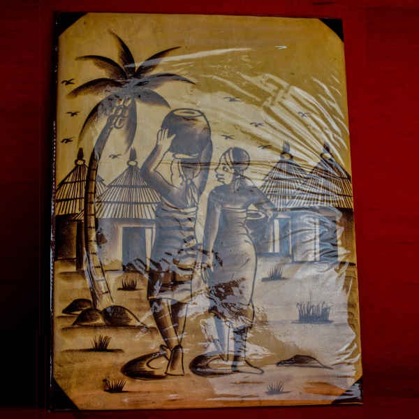 Tableau en cuir pyrogravée - Saine de village modèle 1