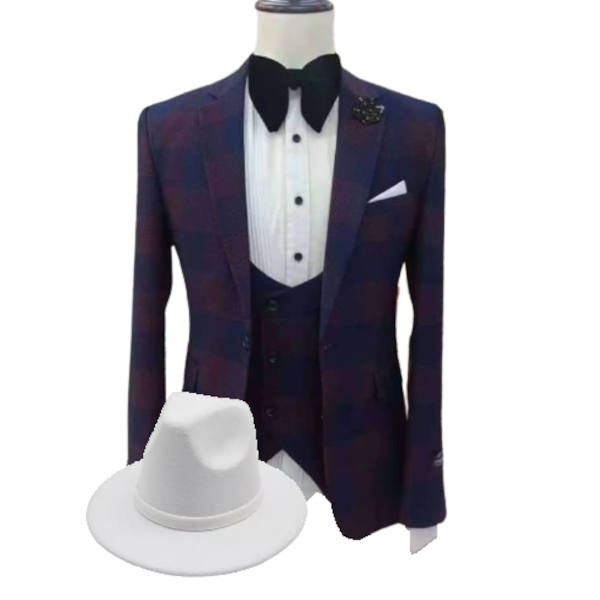 Découvrez le costume en tweed à carreaux. Avec des accents bordeaux profondément intégrés au style, il fait la paix avec des pièces décontractées ou formelles à tout moment et à toute occasion.
