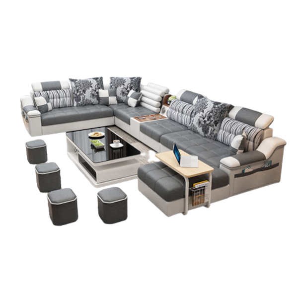 Canapé en U - 6 places & 1 lit - 4 poufs