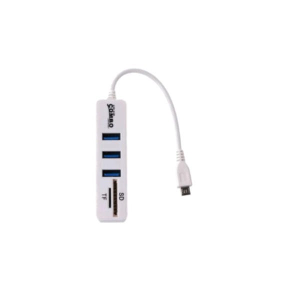 OTG 2 en 1 de type-V8 : Répartiteur de concentrateur USB 2.0 combiné 3 ports et lecteur de carte SD/TF
