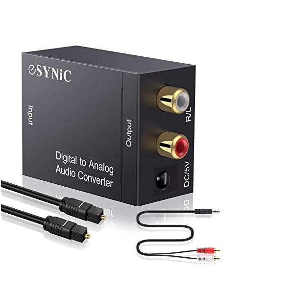 - Convertit les signaux audio numériques coaxiaux ou Toslink en signaux audio analogiques L / R.
