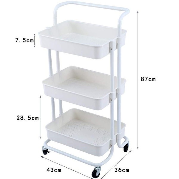 Découvrez notre jolie Desserte à Roulettes 3 Plateaux avec Poignée, idéal pour créer du rangement pratique dans votre cuisine grâce à ses 3 étagères !