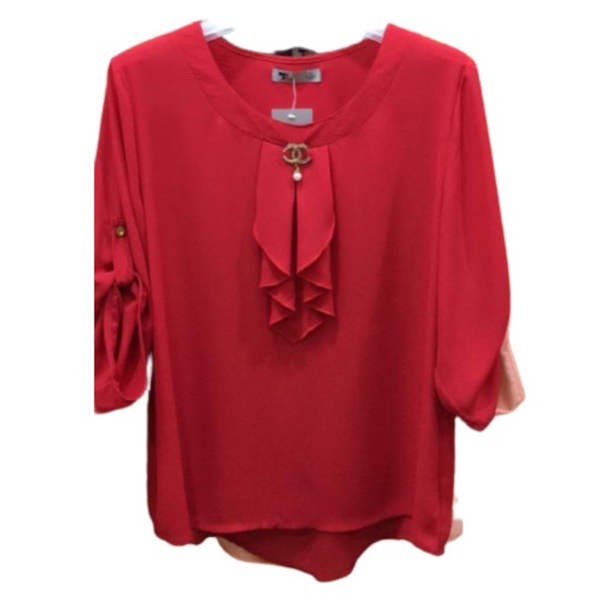 chemises manches demi lanterne, col en v, décoration à volants - Type Red