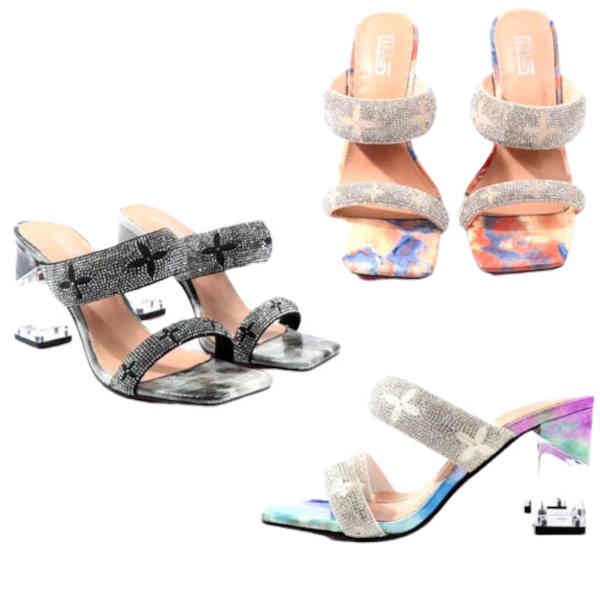 Chaussures à talons hauts pour femmes tendance quotidienne 7,5 cm d'épaisseur mot strass brillant avec des sandales pantoufles noir